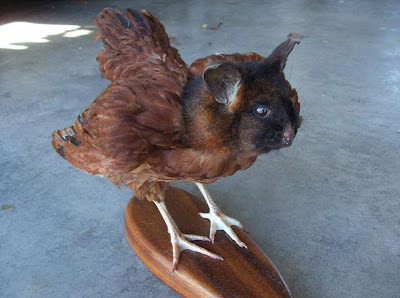 En este blog estamos acostumbrados a ver mutaciones, criaturas prehistóricas y toda clase de animales raros sean vivos o muertos. Pero esta vez vamos a adentrarnos en el tenebrosos universo de la taxidermia, porque lo que viene a continuación se trata de animales disecados y mezclados... La obra de un aficionado a la taxidermia causa controversia con sus denominados «animales híbridos». Su peculiar idea se basa en combinar las partes del cuerpo de diferentes criaturas muertas en las carreteras. Andrew Lancaster, de 57 años, aprendió taxidermia durante 14 años, aunque comenzó como un hobby al que ha ido dedicando su tiempo libre. Con una formación totalmente autodidacta, Lancaster ha experimentado estas «creaciones» durante los últimos tres años. Él lo considera un arte: «Algunas personas me llaman enfermo y otros piensan que el resultado es bastante bueno», dijo el taxidermista en el diario «New Stuff». «Siempre veo varios animales muertos al lado de la carretera y pensé que era un desperdicio. Cuando estoy conduciendo por el camino y veo alguna de estos animales, vuelvo a por él»,Andrew insiste a los medios de que nunca caza a los animales, sólo trabaja con ejemplares encontrados ya muertos. Lancaster, que ahora vive en Tauranga (Nueva Zelanda) vende los híbridos a través de Internet. Trabaja durante el día como cuidador de un puerto deportivo, y durante la noche se dedica a sus "animales híbridos". Os he hecho una selección de los que parecen estar mejor trabajados y sus "hibridaciones" son más serias, porque la verdad sea dicha... hay muchos modelos que Lancaster ha trabajado con cierto alto grado de humor negro que pueden hasta ofender la sensibilidad de los amantes de los animales. Los modelos que os dejo ha continuación podrían pasar perfectamente por animales criptozoologicos .